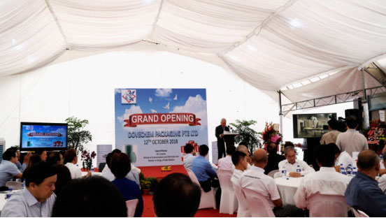營口北方制桶設備科技有限公司出口新加坡的全套高速10只桶/分鐘制桶生產線,于2018年10月12日在新加坡正式投產,新加坡用戶舉行了盛大的開幕式。新加坡主管貿易關系的部長易華仁先生主持開幕式,并參觀了由北方制桶設備以交鑰匙工程形式提供的全套高速10只桶/分鐘制桶生產線。北方制桶設備受邀參加開幕儀式。