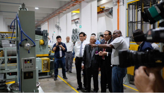 ▲圖3:新加坡貿易部長易華仁先生參觀工廠內由北方制桶設備提供的全套鋼桶生產線