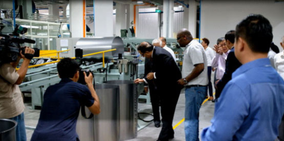 剪彩儀式后,易華仁部長參觀了工廠鋼桶生產線,并給予極高評價。